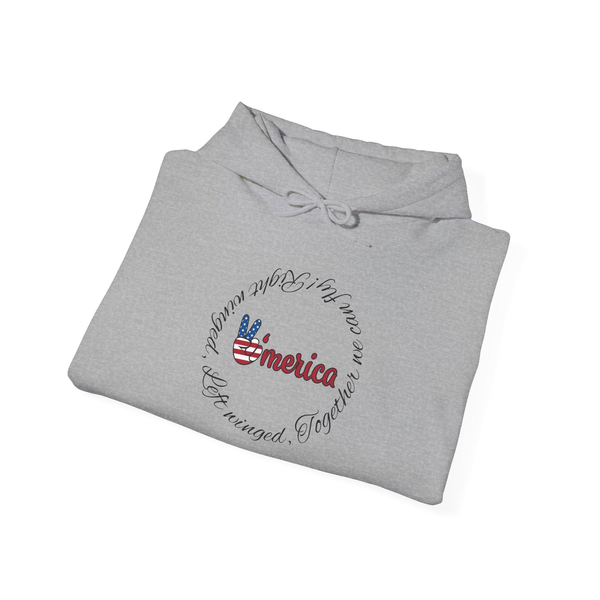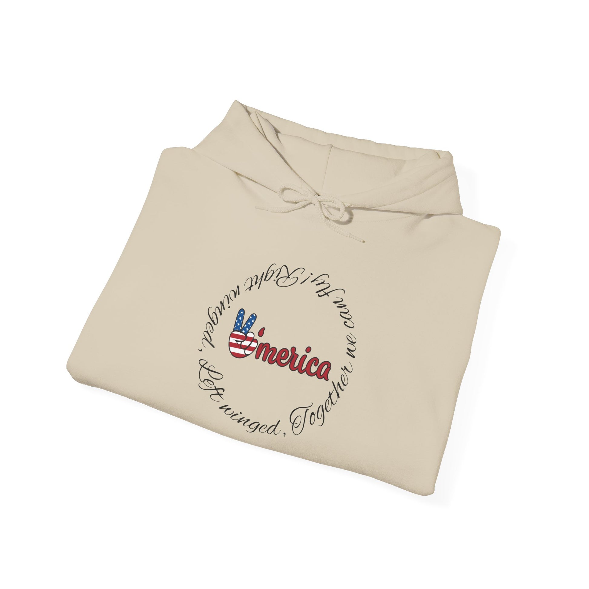 This cozy hooded sweatshirt carries a quiet, homespun patriotism—soft fleece, a roomy kangaroo pocket, and a subtle, hand-drawn Americana motif at the chest. The front graphic blends a friendly script with a small peace-hand flag illustration, while a faint embroidered sketch on the upper back adds a low-key, artisanal touch. It feels like a chilly morning on the porch: warm, familiar, and a little nostalgic. Slip it on for long drives, backyard barbecues, or slow coffee rituals when you want comfort that speaks in familiar, handcrafted details rather than loud logos.