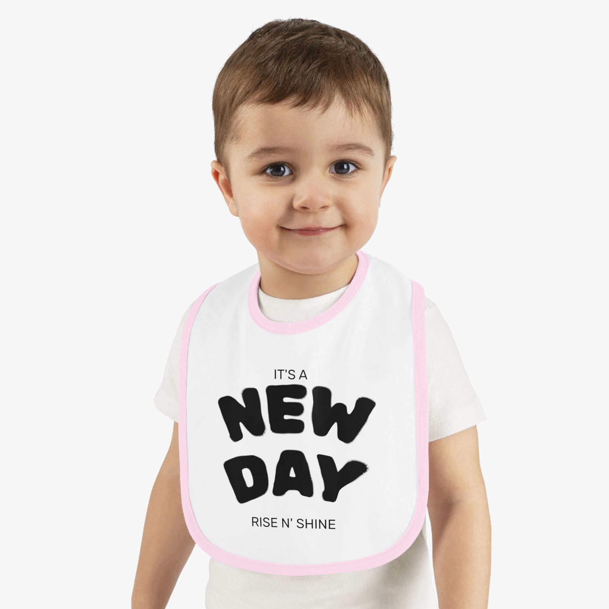 New Day Baby Bib - Contrast Trim, Cute Gift for Infants